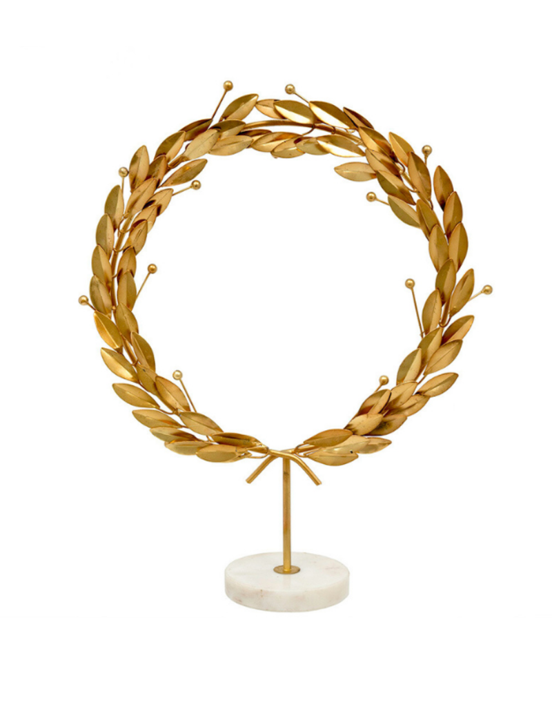 Classic golden leaf wreath is a true work of sculptural art. Each leaf has been hand cut and molded into place and the wreath stands on a marble base.