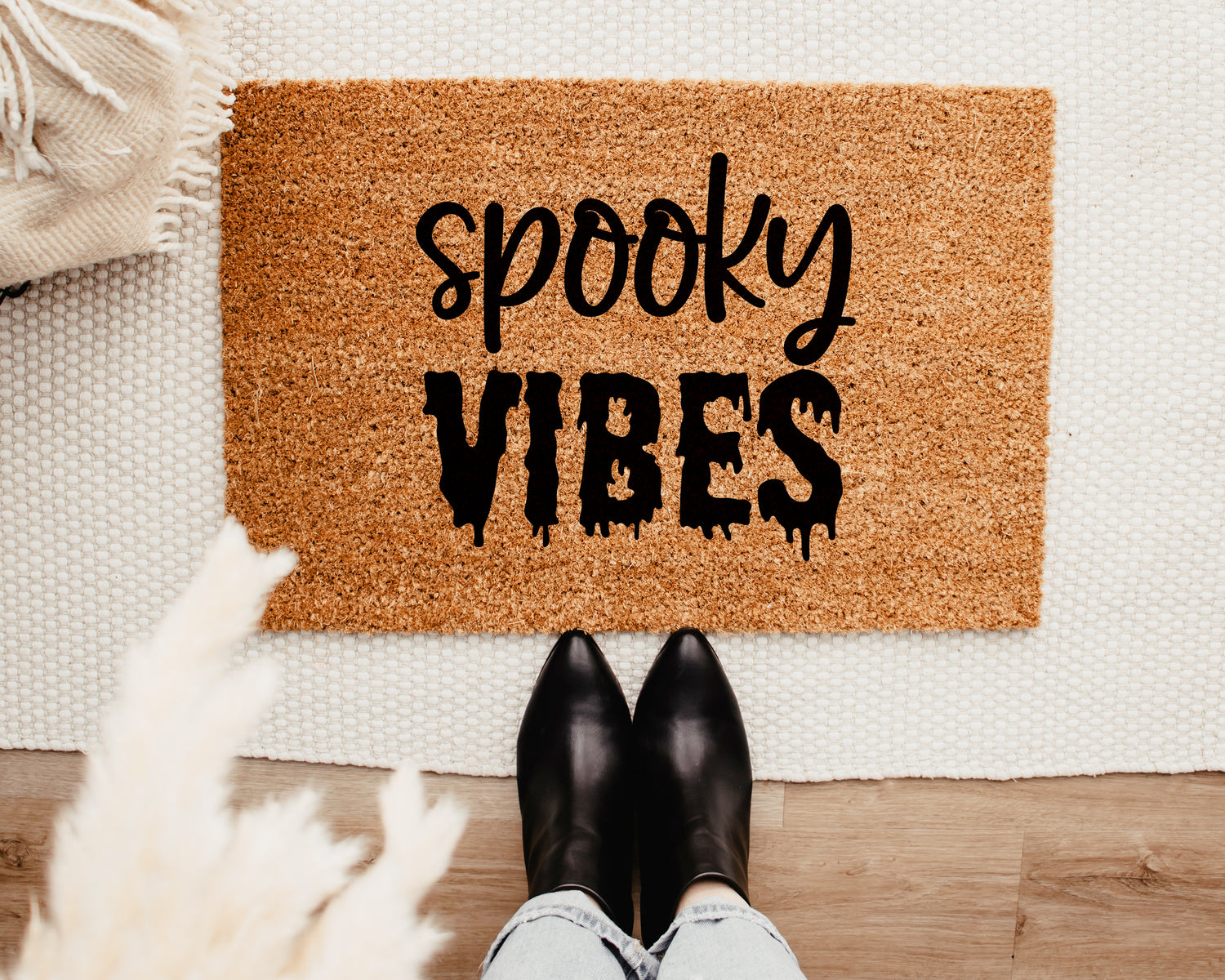 Our Spooky Vibes Doormat is the perfect addition to your entry way to create an inviting and trendy vibe! Our doormats are created with high quality UV Ink.