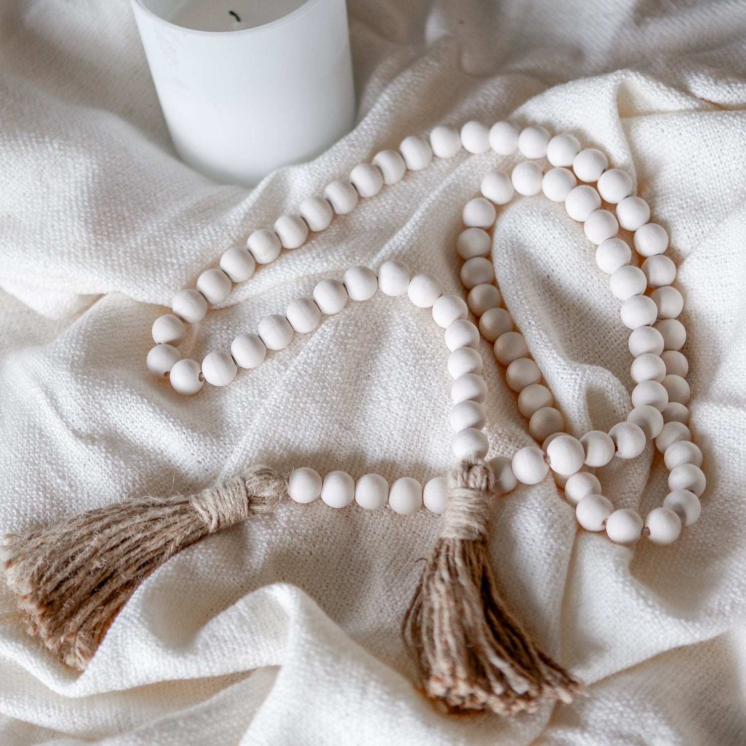 These beautiful handcrafted wood bead garland strands make a great accent to your home decor. They pair nicely with modern farmhouse, boho, or traditional home decor style!